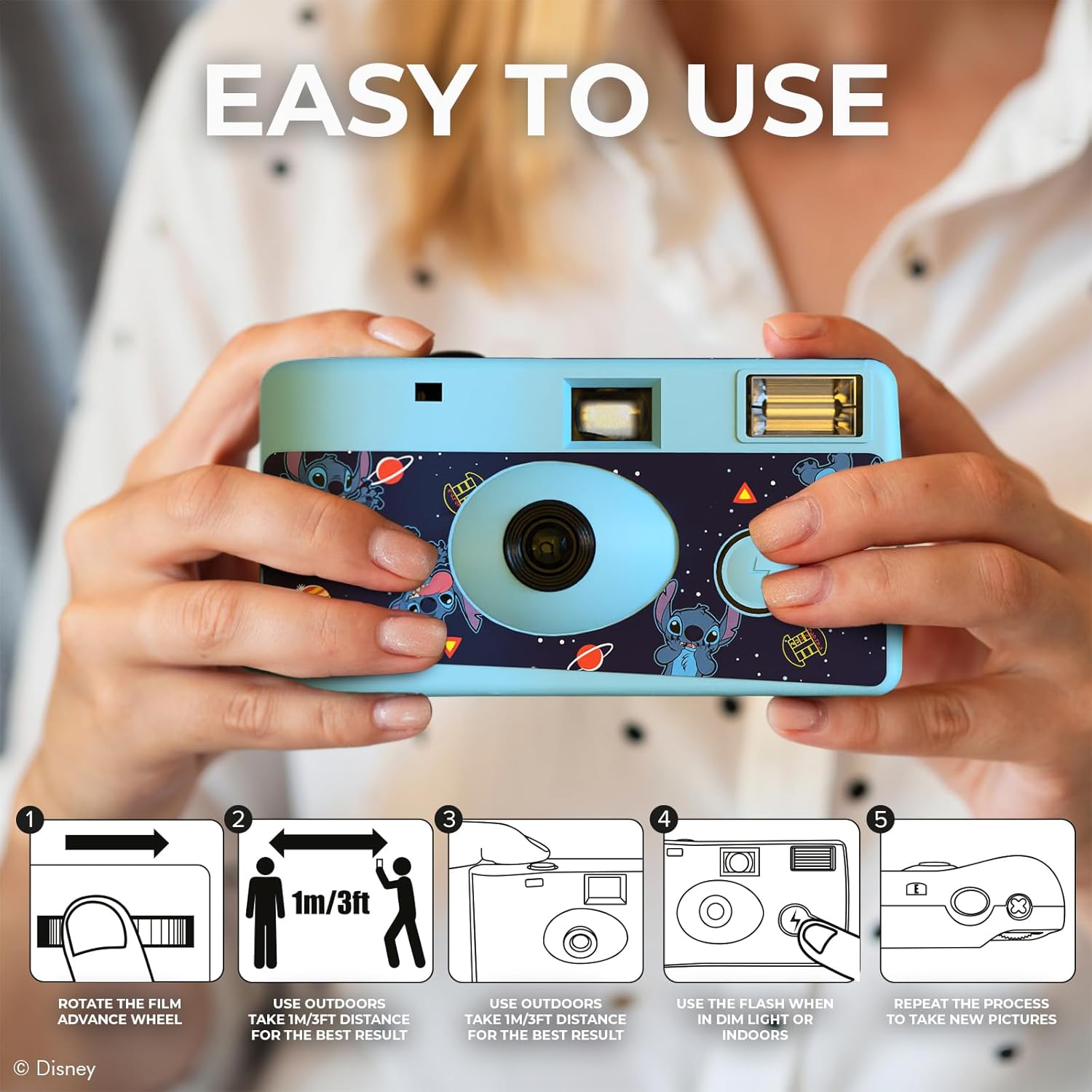 Disney Lilo and Stitch Disposable Camera with Flash – 20 Exposure Film – Lilo and Stitch Gifts for Women, Men, and All Fans of Lilo and Stitch Stuff (Stitch Galactic)